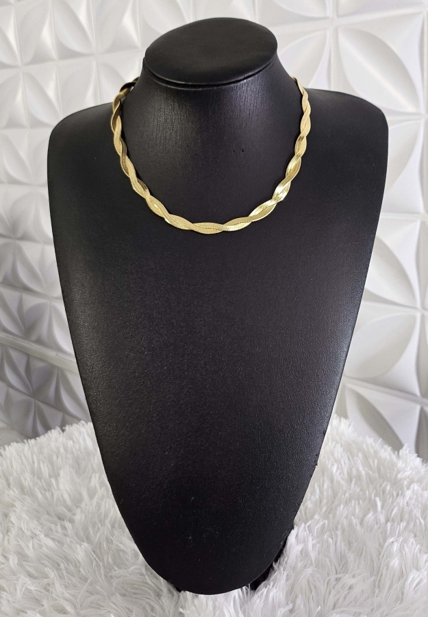 COLAR SALAMANDRA TRANÇADO FOLHEADO SEMI JOIA