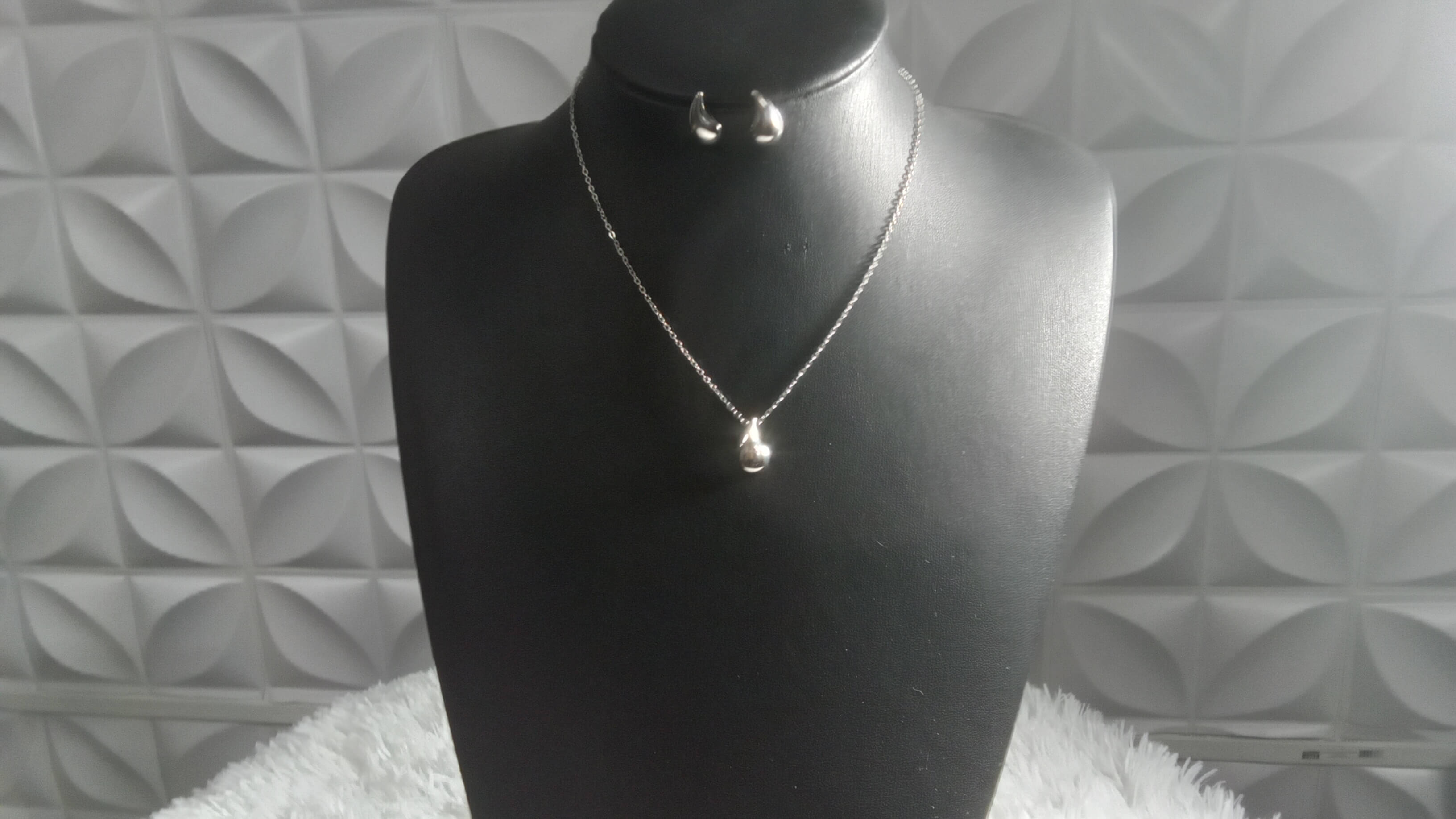 CONJUNTO FOLHEADO GOTAS COLAR E BRINCOS 20 CM