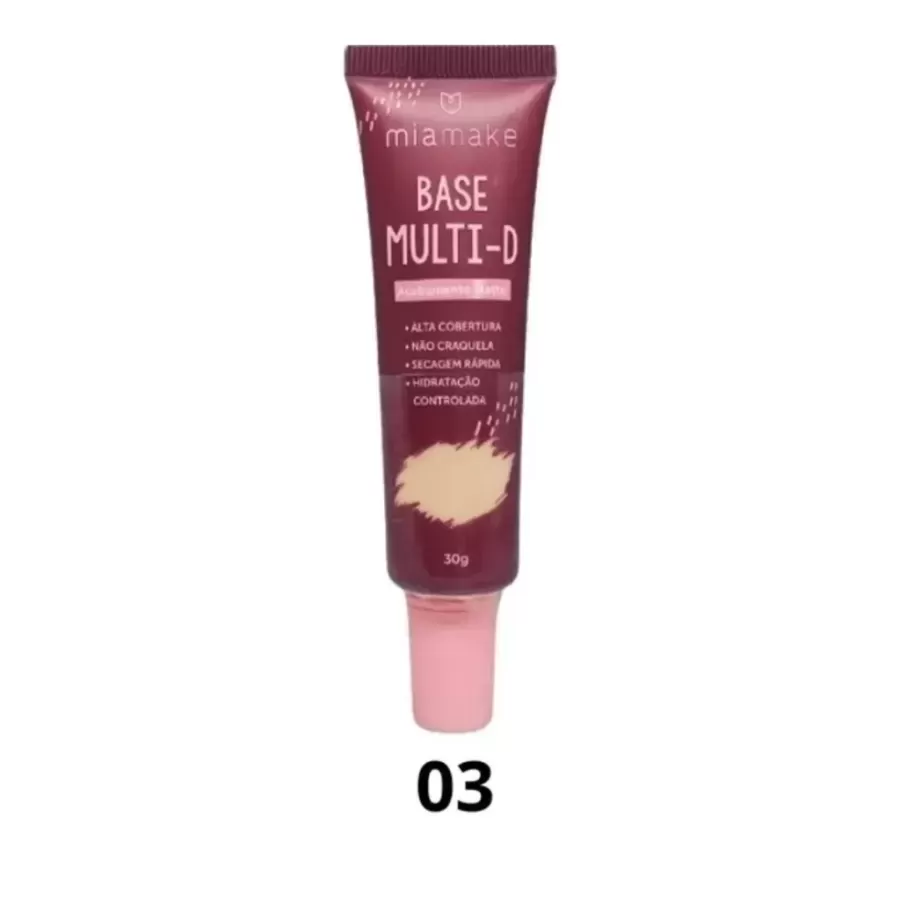 A Base Líquida Multi-D Acabamento Matte Tons Médios da Mia Make proporciona uma cobertura uniforme e de longa duração. Sua fórmula leve e oil-free controla a oleosidade, oferecendo um acabamento matte impecável. Ideal para peles de tons médios, disfarça imperfeições e proporciona um visual natural e sem brilho ao longo do dia.